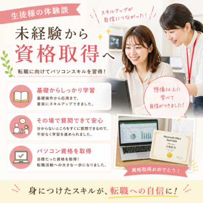 「パソコン初心者でも大丈夫?」「久しぶりの学び直しで不安…」